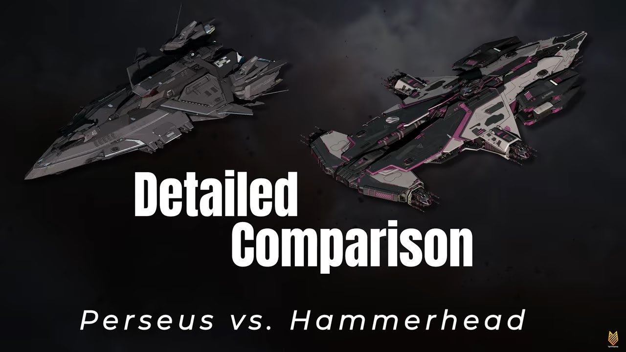 The video compares the RSI Perseus and Hammerhead heavy gunships in Star Citizen, highlighting the Perseus’s superior hull health, cargo capacity, and more versatile armament that allows for smaller crew operation and greater solo play potential. It also emphasizes the Perseus’s powerful Medusa cannon, which significantly outperforms the Polaris’s Maris cannon in damage and range, making the Perseus a formidable choice for heavy combat.