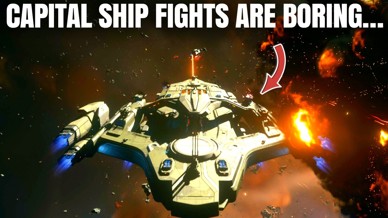 The video critiques the current capital ship combat in Star Citizen as slow, unbalanced, and unengaging, with capital ships lacking lethality against swarms of small fighters. It proposes redesigning capital ships to be slower but far more powerful with improved turret defenses, while balancing small ships by reducing their damage and enhancing maneuverability to create more strategic and exciting large-scale battles.
