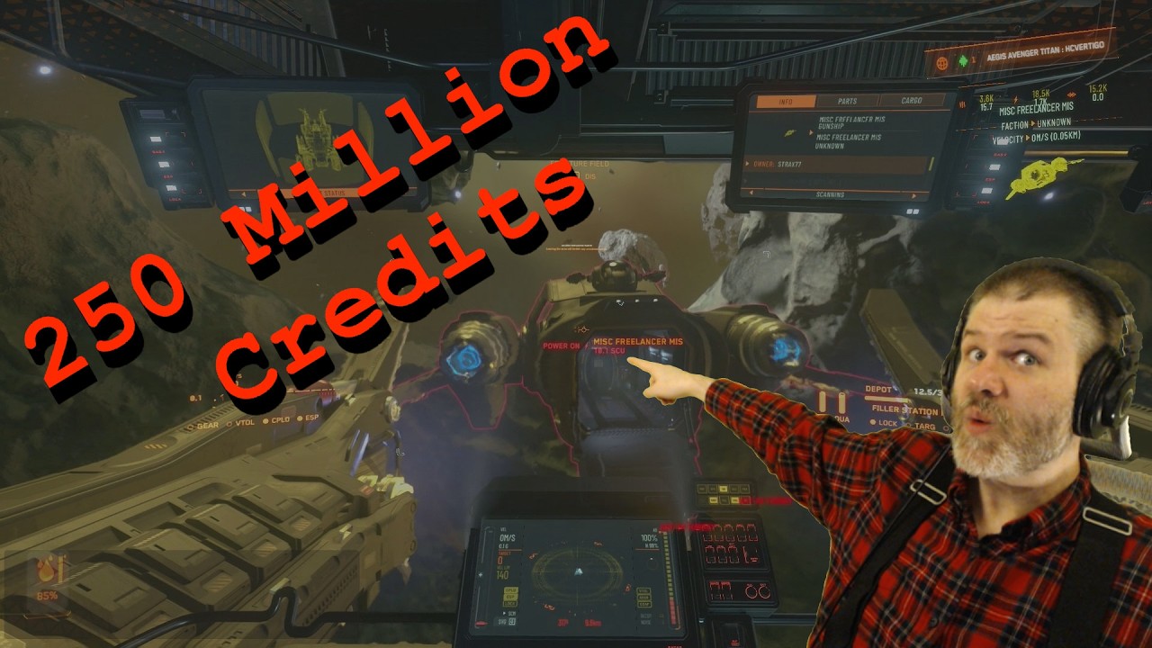 As the player works on salvaging, they manage to disable the Freelancer’s systems, turning off power plants and other components to strip the ship. The opposing player panics and crashes into an asteroid after the player begins to fight back, which the narrator finds amusing and clips for later. The player reflects on the common hostile behavior in Star Citizen’s Pyro system, likening it to the “Day Z syndrome,” where players shoot first without hesitation.