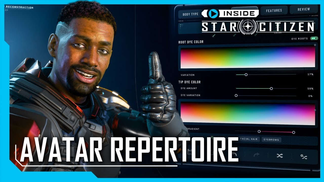 The video “Inside Star Citizen: Avatar Repertoire” explores the development of a new character customizer for the upcoming Alpha 3.23 in Star Citizen, focusing on enhancing player representation and ownership over their avatars. The customizer features a DNA system for detailed facial customization, a wide range of options for skin, hair, makeup, and the ability to save and share character configurations, with future updates planned to include additional customization options.