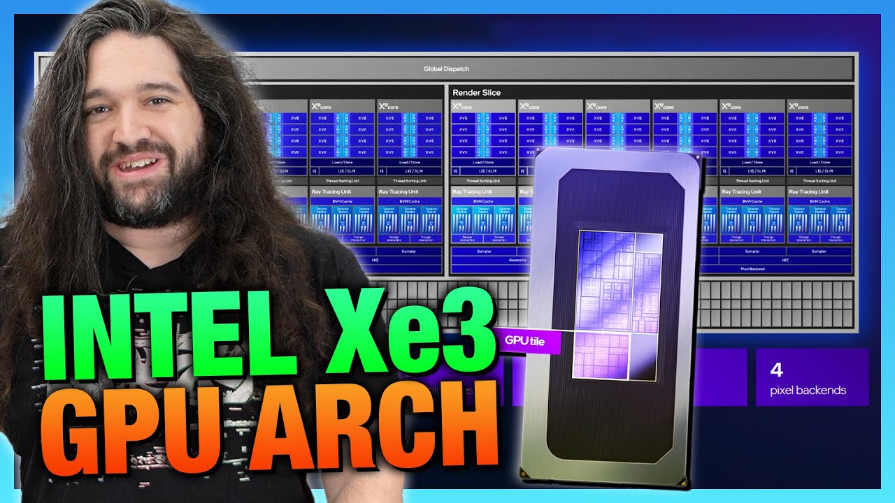 Intel has announced its new XE3 GPU architecture, debuting first in Panther Lake mobile and handheld devices, marking an evolution from the previous XC2 design. The key changes in XE3 include larger render slices with more XE cores per slice, increased L1 and L2 cache sizes, and better register utilization. These hardware improvements aim to address previous limitations in resource utilization and pipeline efficiency seen in Intel’s earlier GPUs like Battle Mage and Alchemist. Microbenchmarks reveal significant performance uplifts in areas such as occluded primitive handling, isotropic filtering, mesh rendering, and ray-triangle intersection, indicating better rendering efficiency and potential gaming performance gains.