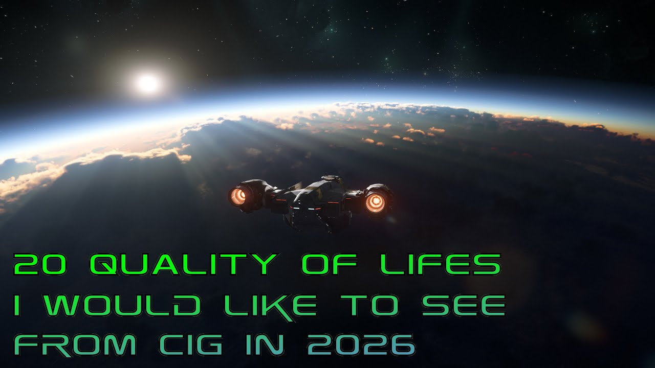 The creator reviews the limited progress of 2025 quality of life improvements in Star Citizen and presents a new list of 20 suggested enhancements for 2026 focused on smoother map navigation, better ship and crew management, improved cargo handling, and more intuitive interface features. These proposed changes aim to streamline gameplay, reduce player frustration, and make the overall experience more enjoyable and user-friendly.