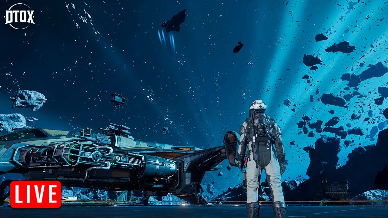 The livestream covers the initial wave of the Star Citizen 4.4 PTU update, focusing on the new Nyx star system and its landing zone, Levki. The host starts by highlighting the rough performance issues experienced during this wave, especially compared to previous testing phases like EVO. Despite the excitement of exploring new content, the gameplay is heavily impacted by severe frame rate drops, particularly in Levki, which is described as a “slideshow” due to its unoptimized state. The host uses a Carrick ship for exploration, acknowledging it might be the last time before it gets replaced by the Perseus, and emphasizes the contrast in performance between the starting area, Lville, and the new Nyx system.