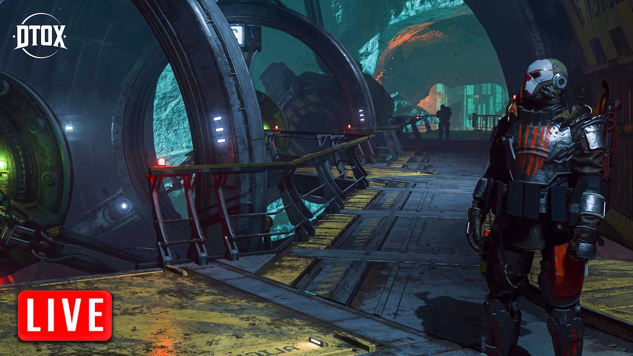The livestream centers around a Star Citizen 4.7 gameplay session featuring a Rock Breaker mission with an organized squad, serving as an org training night. The host, Detox, welcomes viewers and chats with the community, explaining that the event is meant to be a methodical, team-based exercise focusing on communication, movement, and coordination rather than a fast-paced or competitive run. Prior to the event, Detox spends time grinding for resources and reputation with the Rayari Incorporated faction, discussing some of the game’s mechanics and bugs, such as inventory stacking issues and the rarity of certain in-game materials like “rant dung.”
