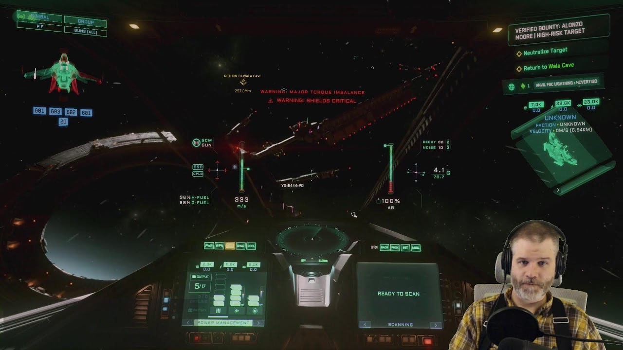 The streamer delves into the gameplay aspects, including cargo hauling missions and combat scenarios. He critiques certain mission designs, particularly those involving mixed friendly and enemy NPCs, suggesting improvements to reputation and difficulty scaling to prevent accidental friendly fire and negative consequences. He also comments on the game’s medical gameplay, noting the abundance of medbeds reduces the challenge and impact of injuries. Throughout the gameplay, he interacts with the in-game environment, manages inventory, and navigates various missions, occasionally encountering bugs and glitches that affect the experience.