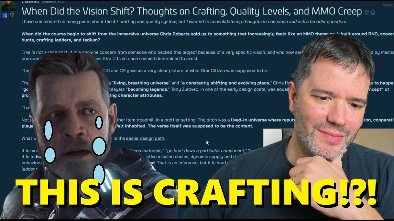 The video highlights growing frustration among Star Citizen players with the new crafting system, criticizing it as a grind-heavy, RNG-dependent mechanic that replaces skill-based gameplay with uninspired, monetization-driven content. This shift is seen as emblematic of the game’s broader decline from an innovative space sim to a tedious MMO grind, leading to widespread disappointment and dwindling player engagement.